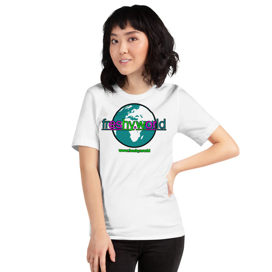 Peppen Sie Ihren Stil auf: freshy.world Unisex-Logo-Baumwollshirt - Weiße Leuchtkraft